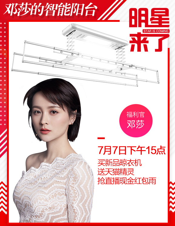 7月7日15:10—16:00,好太太官方旗舰店将邀请“超人妈妈”邓莎亲临直播间,与我们一起面对面互动,分享她的生活态度,亲测好太太与天猫精灵联合定制的新品声控晾衣机,还有3大惊喜福利等你来!
