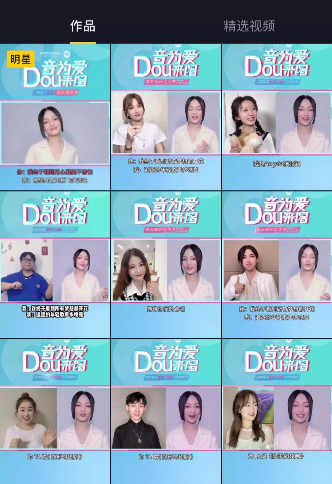 同时抖音平台上20多位百万粉级抖音音乐达人齐参与到#音为爱dou来唱#合拍挑战赛当中