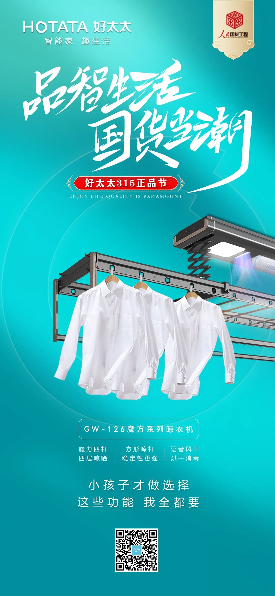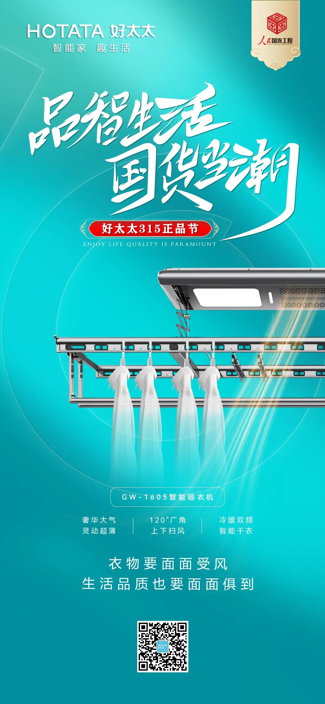 好太太作为国货卓越品牌和晾晒行业领军品牌,此次入选人民国货工程,不仅是产品实力的有力证明,也是好太太品牌发展的一次跃进。