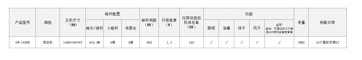 好太太智能晾衣机 GW-1285 87 毫米超薄收拢厚度,薄比身份证宽度的身躯,却蕴藏着巨大的能量,这得益于产品团队采用的特殊加宽晾孔设计,单孔可晒两件衣物,让晾晒量提升一倍。同时,晾被杆中置设计还能实现衣被同晒,满足大众家庭大部分晾晒需求。在结构和材质上,GW-1285采用钢筋级金属骨架,承重达35KG,承托起全家衣被完全没问题。