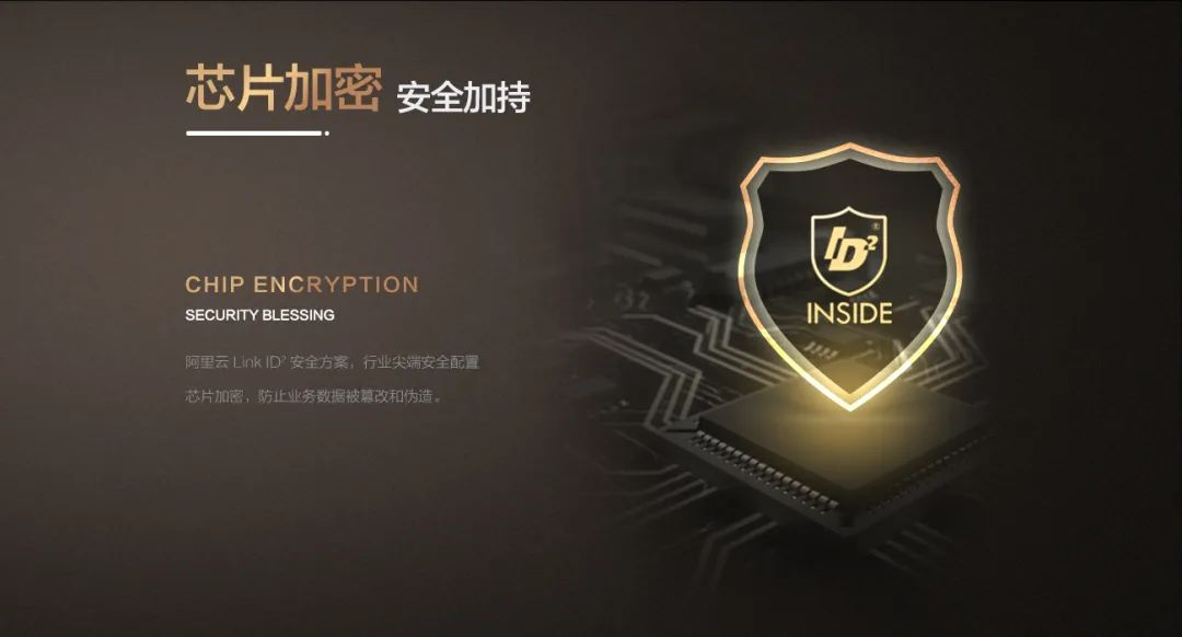 阿里云 LINK ID²安全方案,行业尖端安全配置,数据加密,防止业务数据被篡改和伪造,电子机械双核系统,极端情况正常使用