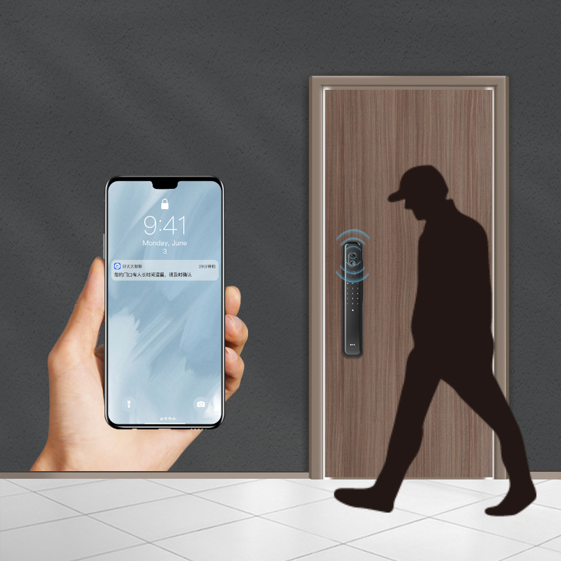 2、 智能防盗:遭遇暴力/技术开启门锁时,自动报警提示;